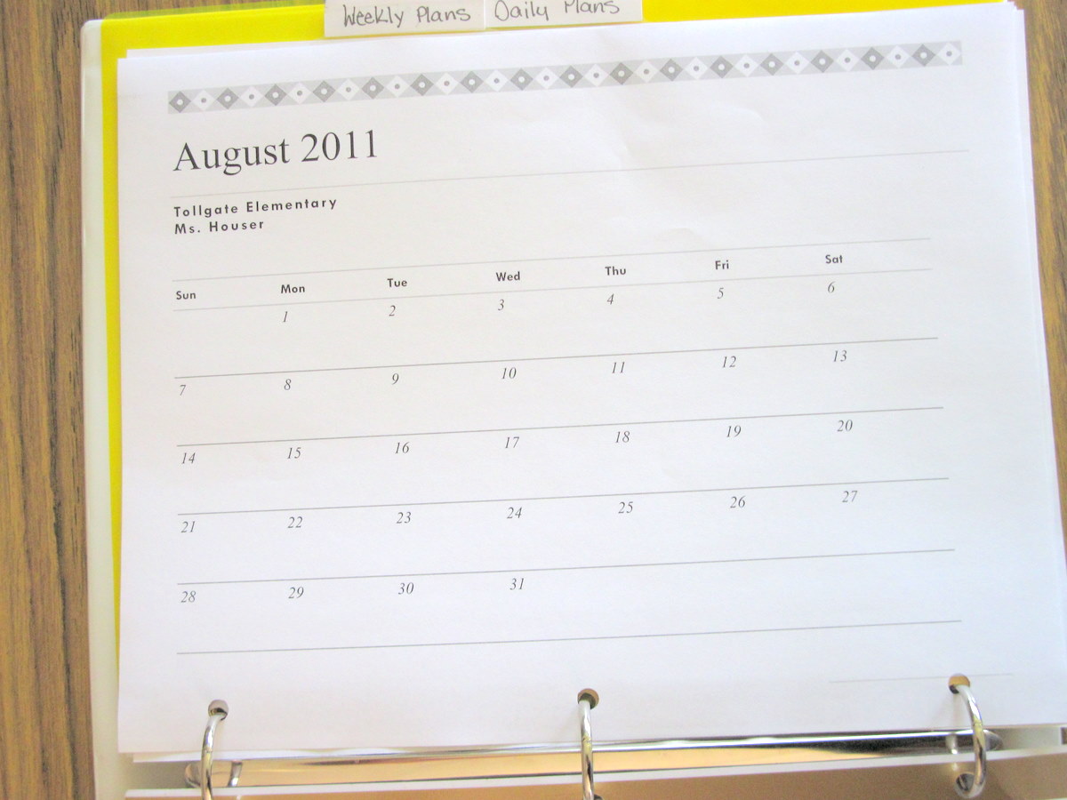 I used white tab dividers, some washi tape, and my label maker to create sections for “Calendar” and “Lesson Plans”. Two essential sections for every teacher!